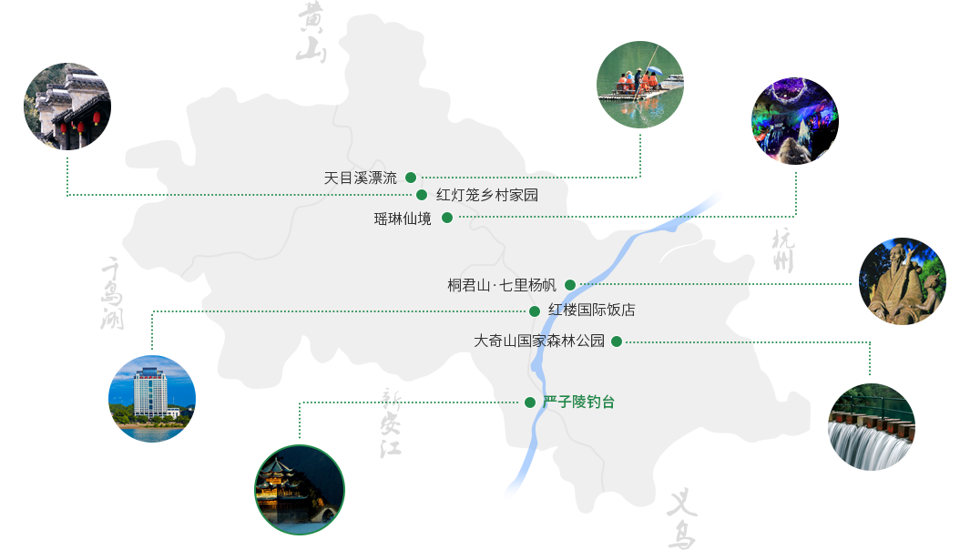 桐廬,地處國家級風景名勝區“富春江—新安江—千島湖”的中心地段。境內,山水旅游資源得天獨厚,山青水秀,洞奇石美,古跡悠悠,勝跡處處?!盀t灑桐廬郡”、“流水帶花香”便是流傳了千年的吟詠。桐廬,處處是山水詩,寸寸是寫意畫, 從1600多年前的南北朝到清末,就有1000多名詩人到此盤桓后留下過3000多首詩文佳篇。